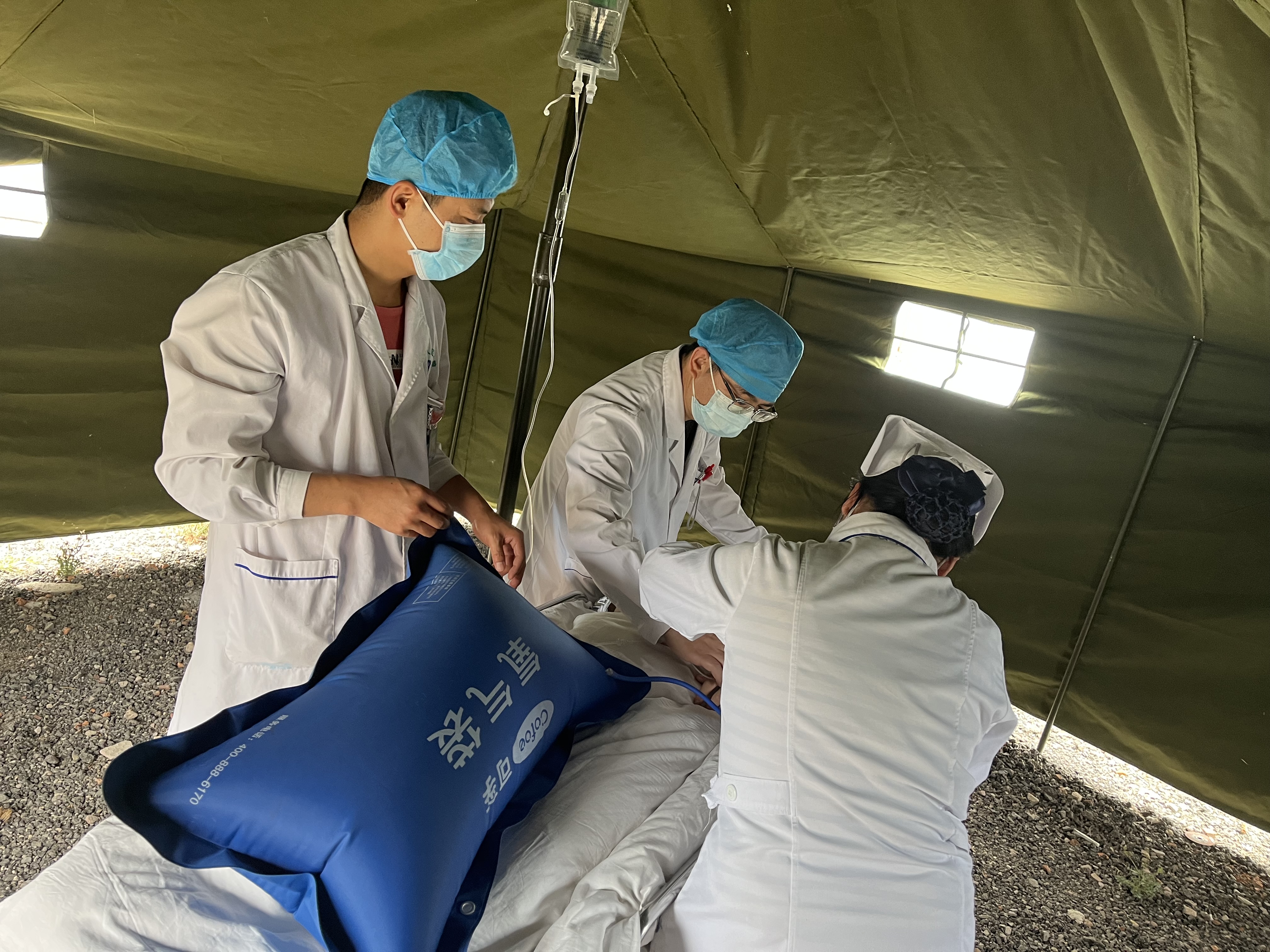 当天下午2点30分演练开始,模拟地震发生,演练科室医护人员严格按照演练要求,有序组织患者、家属疏散避险,紧急撤离到院内安全疏散点。与此同时,演练总指挥宣布启动防震减灾医疗救援应急预案,各应急工作组迅速组织人员开展救援,疏散转移患者,抢运紧急医用物资,启动医院后备电源、水源、氧气源,搭帐篷建立临时病区,现场人员有条不紊开展抗震抢险及医疗卫生救援工作。