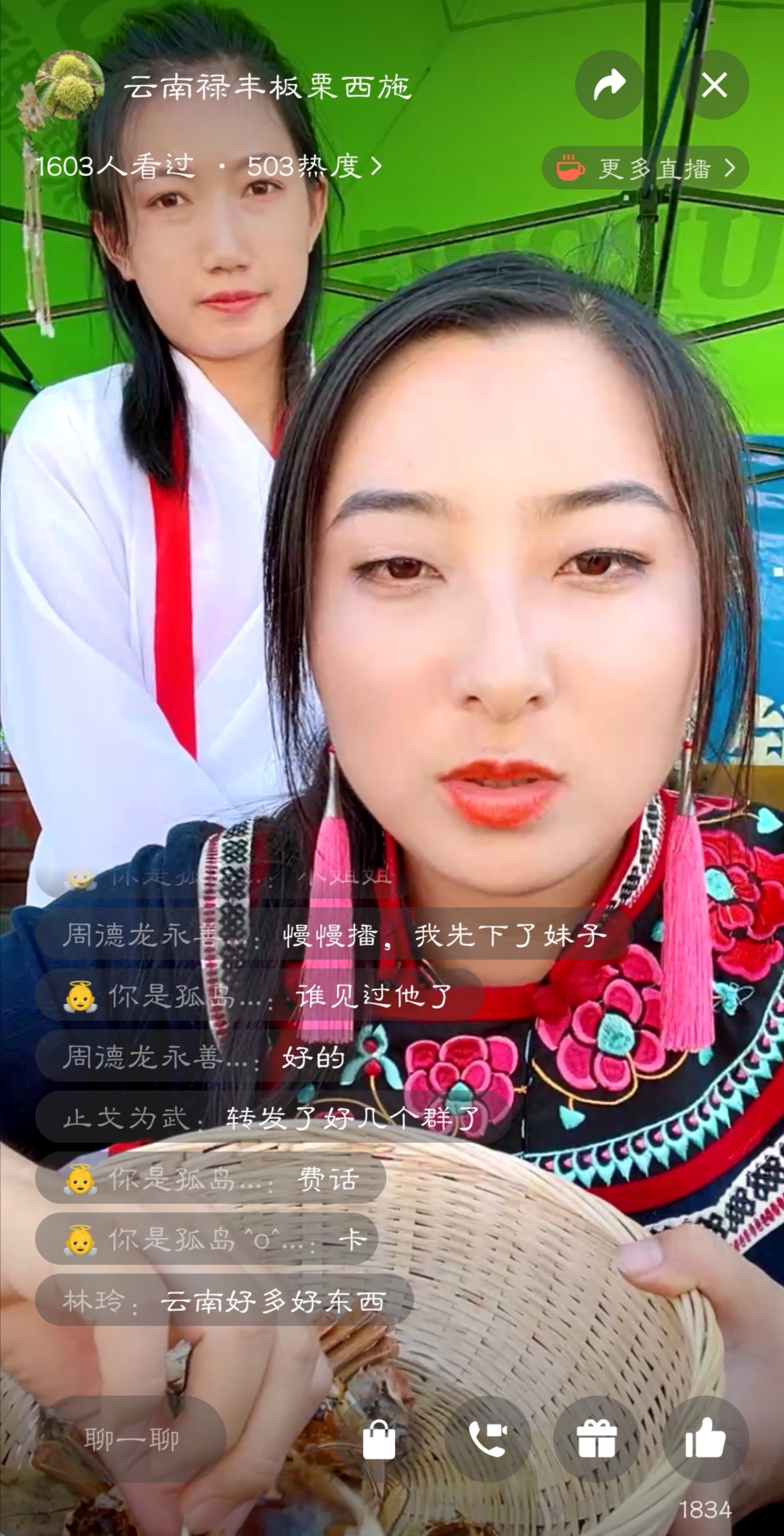 直播现场,近四十万粉丝的知名网红“星哥”一身“至尊宝”扮装,联袂本土重点打造的“蜂哥”“板栗西施”“辣子面姐姐”“董懂”等10余名主播,以直播带货、才艺直播、探店、短视频等多种形式,通过抖音、拼多多、微视频等新媒体,推介禄丰农特产品、文旅资源。好货加上给力主播,“走播、吃播、玩播”一起上,直播间粉丝纷纷观看点赞、互动交流,在了解农产品的生产、加工、销售及价格等信息后,纷纷下单。展销现场也热闹非凡,三窝蜂蜜、友七七板栗、双丰酥肉、和平牛角乌、彝人农夫山窝蛋、彩云“三香”……琳琅满目的禄丰好货,不少游客驻足品尝、选购,消费者通过“线上线下”渠道购买到了心仪的禄丰农特产品。