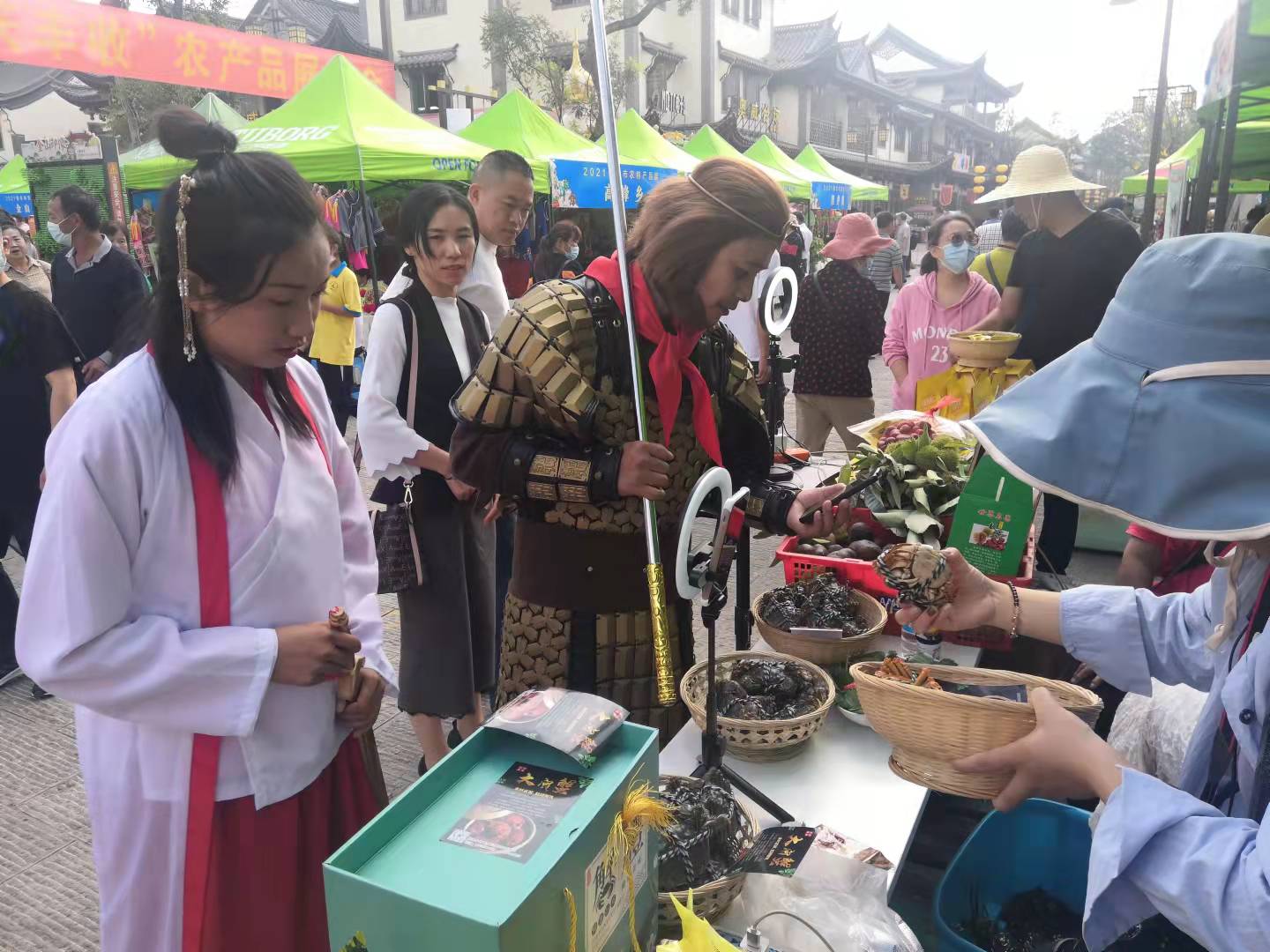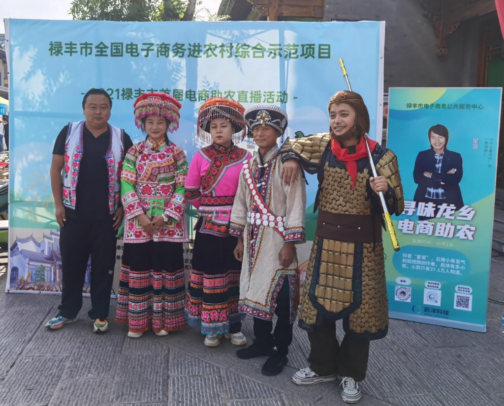 10月1日,禄丰市“寻味龙乡·电商助农”直播活动在金山古镇举行,14个乡镇32个展区,上百种禄丰农特产品线上线下同步亮相。