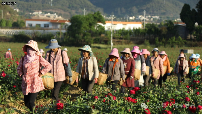 云南嘉华食用花卉种植有限公司经理王世波说:“每年三季鲜花期,每天都有附近村民200人左右到基地进行采摘,每人每天采花收入在120-180元,采花期能为当地村民带来110万元的收入,常年在基地务工人员30人左右,每月工资在2500-3000元左右,每年能为当地群众增收80万元以上,每年能为在玫瑰花基地务工的附近群众增收190万元以上。”