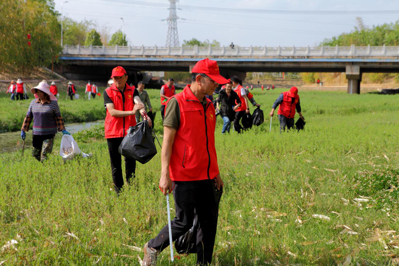 植树活动结束后,全体人员又来到西河城区段,对沿岸白色垃圾、废弃物进行了全面清理。大家干劲十足,身穿红马甲,一手拿钳子,一手拿垃圾袋,分工对河道内的白色垃圾、河道两岸堤面生产生活垃圾、建筑垃圾和农作物秸秆等杂物进行了全面清理。