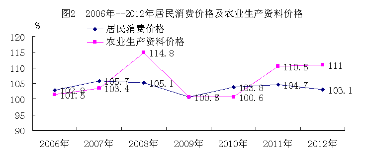 全县居民消费价格总水平比上年上涨3.1%。居民消费价格中,食品价格上涨3.6%(其中粮食价格上涨2.7%);烟酒及用品价格下降1%;衣着价格下降3.6%;家庭设备用品及维修服务价格下降0.3%;医疗保健和个人用品价格上涨5.8%;交通和通讯价格上涨0.4%;娱乐教育文化用品及服务价格上涨3%;居住价格上涨8.5%;服务项目价格上涨7.2%。商品零售价格总水平上涨2.4%。农业生产资料价格总水平上涨11%。