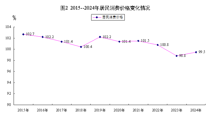 全市居民消费价格总水平比上年下降0.5%。居民消费价格中,食品烟酒价格比上年下降0.9%(其中粮食价格下降2.1%),衣着价格下降0.3%,居住价格下降0.1%,生活用品及服务价格上涨3.0%,交通通信价格下降3.9%,教育文化和娱乐价格上涨1.5%,医疗保健价格上涨1.0%,其他用品和服务价格上涨2.3%。