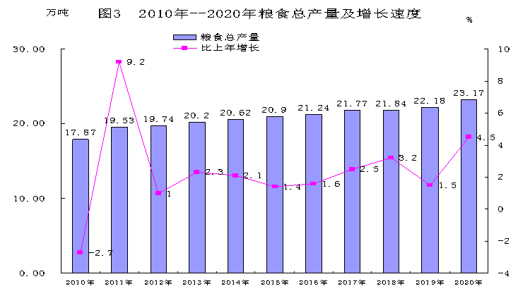 表3      2020年主要农产品产量