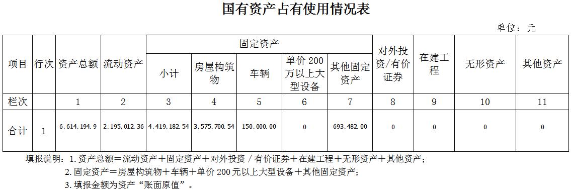 截至2021年12月31日,禄丰市和平镇卫生院部门资产总额6,614,194.90元,其中,流动资产2,195,012.36元,固定资产4,419,182.54元,对外投资及有价证券0元,在建工程0元,无形资产0元,其他资产0元(具体内容详见附表)。与上年相比,本年资产总额减少87,867.12元,其中固定资产减少123,314.00元。处置房屋建筑物0平方米,账面原值0元;处置车辆0辆,账面原值0元;报废报损资产9项,账面原值267,184.00元,实现资产处置收入0元;出租房屋0平方米,账面原值0元,实现资产使用收入0元。