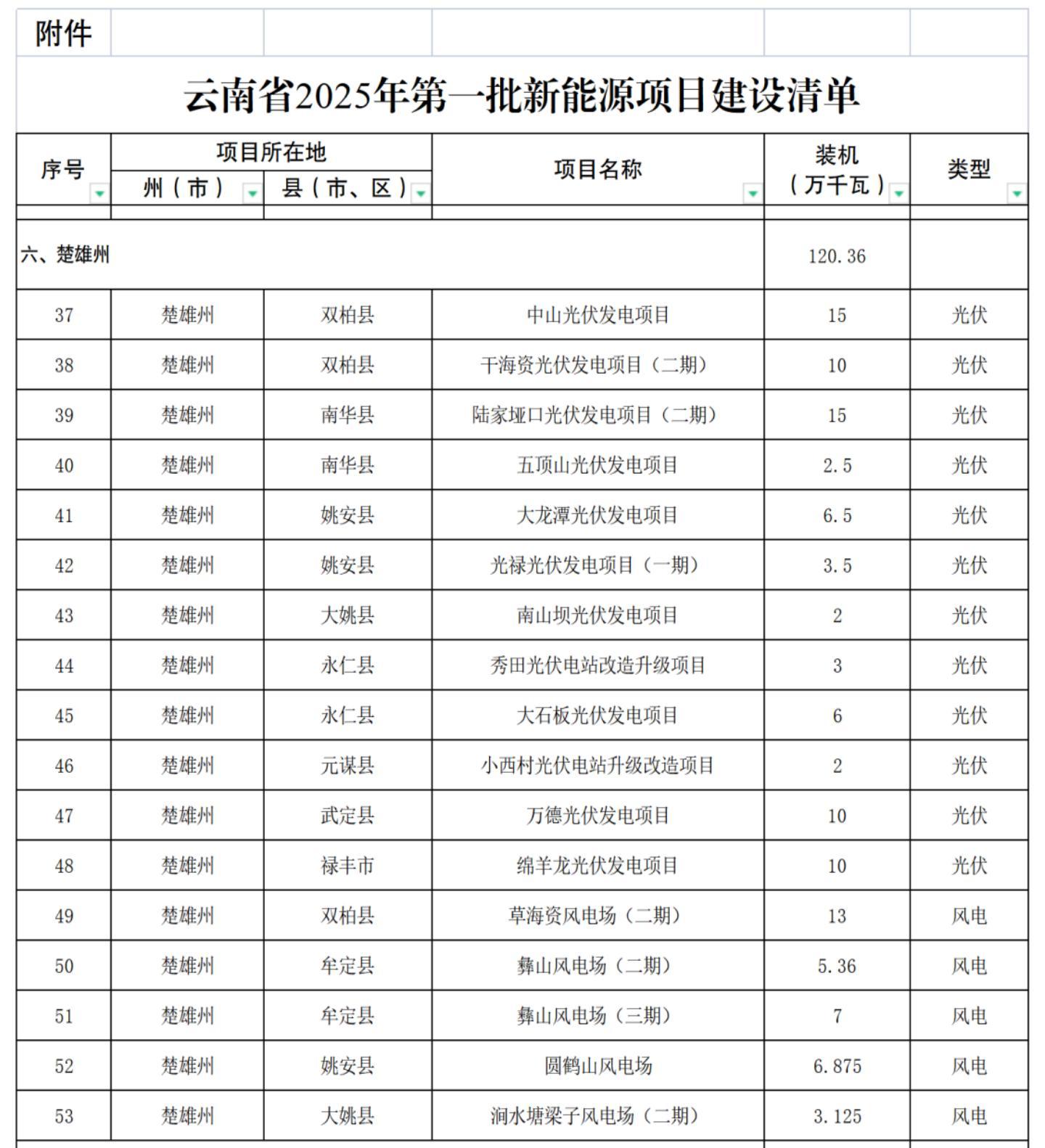 附件:云南省2025年第一批新能源项目建设清单(楚雄州)