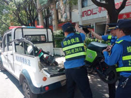 自开年以来,禄丰市城市管理综合行政执法局执法大队,对城区主要道路、农贸市场周边、医院周边、学校周边、广场周边等重点区域非机动车停放进行规范管理。整治中,城管执法人员顶着炎热高温,对驾驶人临时停车的,及时上前劝阻;对无法联系到车主的违停车辆,依法进行现场拍照取证,实行清障拖移,有效规范停车行为,净化道路通行环境。
