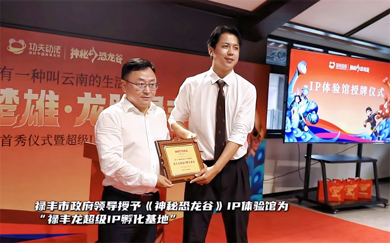 仪式上,中共楚雄州委副书记、州人民政府州长张文旺为中国禄丰龙超级IP《神秘恐龙谷》颁发“城市代言人”证书;禄丰市人民政府市长窦小军为《神秘恐龙谷》IP体验馆“禄丰龙超级IP孵化基地”授牌;功夫动漫集团高级合伙人、副总裁孙唯为IP授权企业颁发授权证书。
