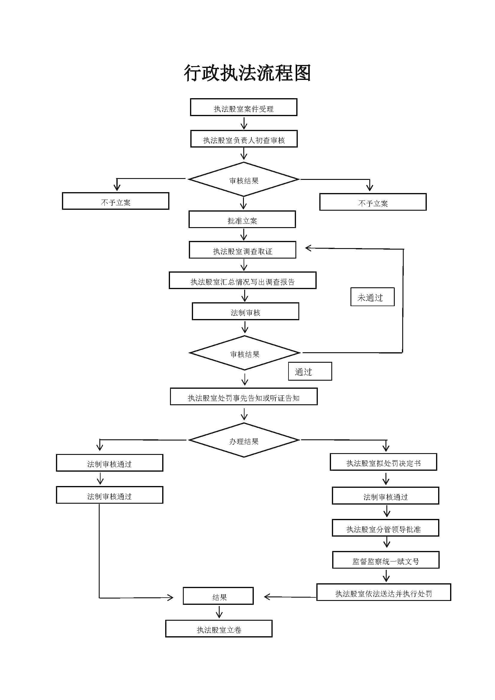 发现违法事实→立案→调查取证→提出行政处罚意见→法制机构审核 →(重大复杂的,由局负责人集体讨论决定)→ 行政处罚事前告知→作出行政处罚决定→送达 →执行→结案→归档。