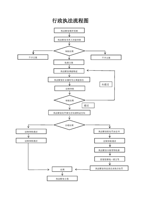 发现违法事实→立案→调查取证→提出行政处罚意见→法制机构审核→(重大复杂的,由局负责人集体讨论决定)→行政处罚事前告知→作出行政处罚决定→送达→执行→结案→归档。