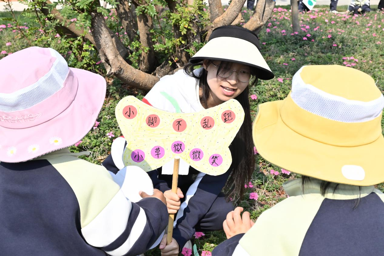 最后,孩子们将自己和爸爸妈妈一起制作的“爱心牌”插进泥土里,一起守护花草。