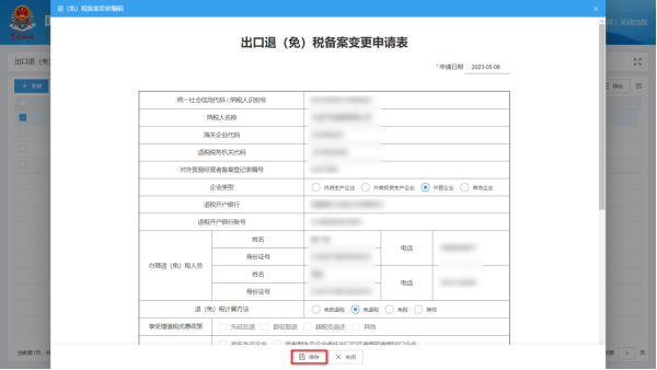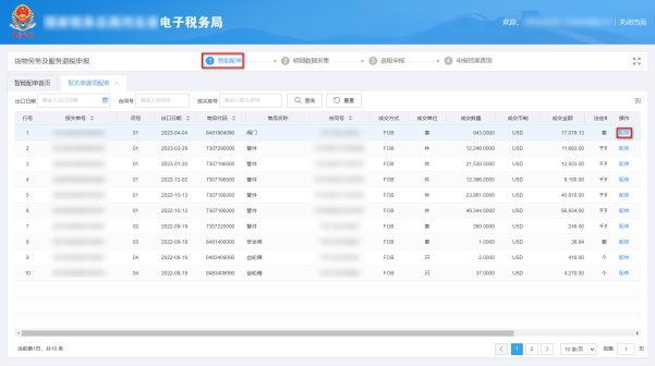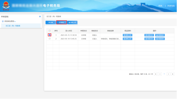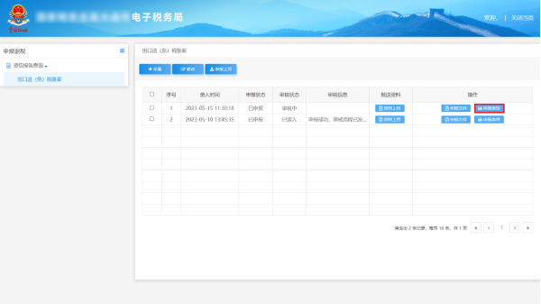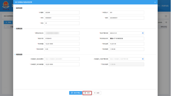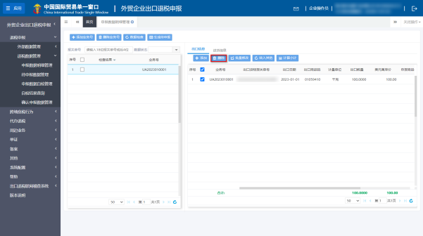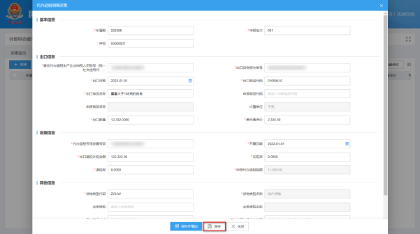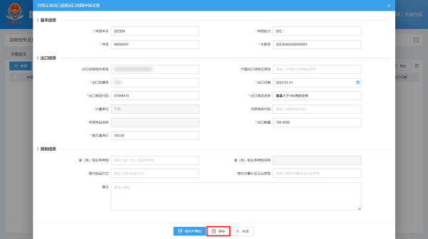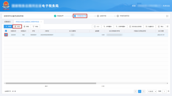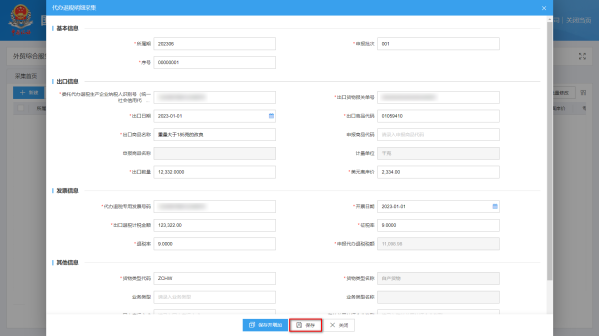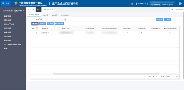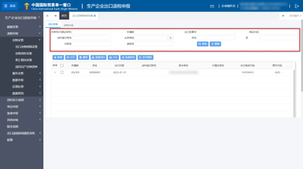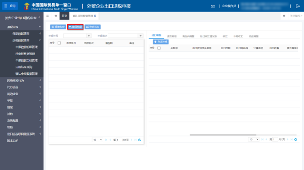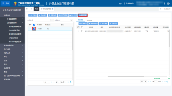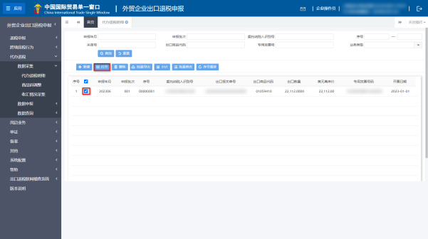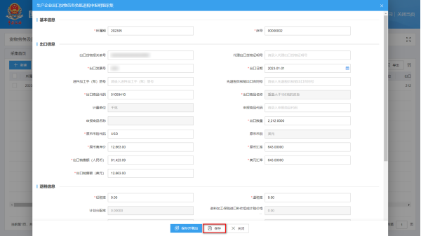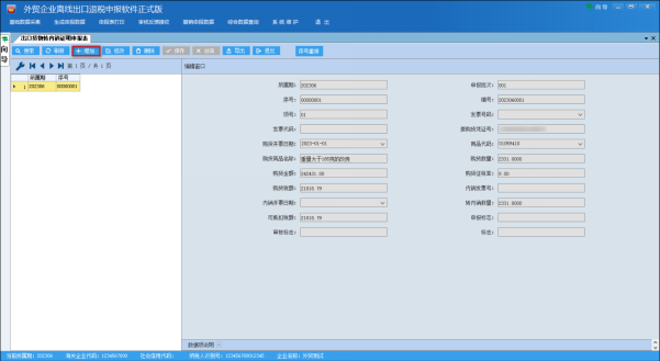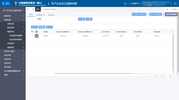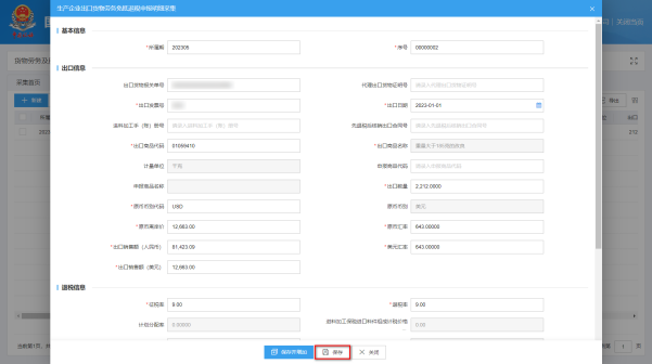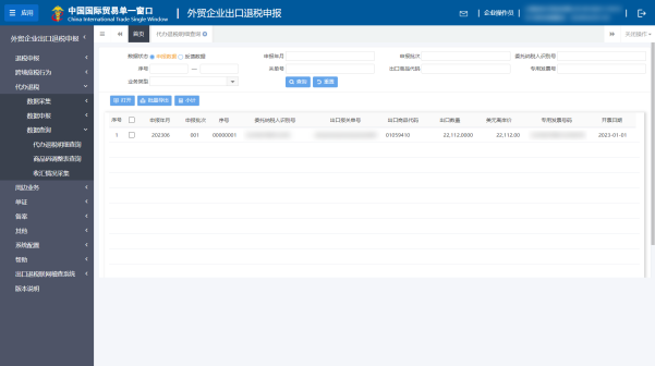 采集出口退(免)税备案数据,明细数据采集保存后即可生成正式申报数据。
