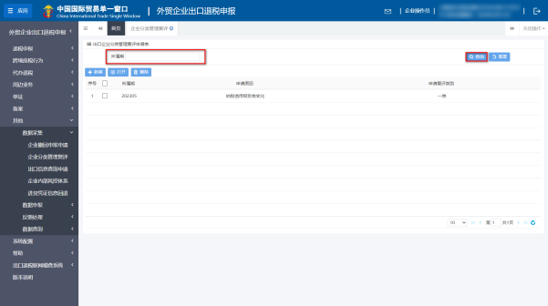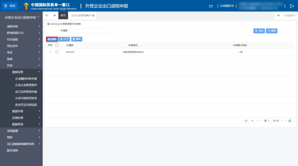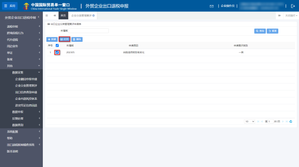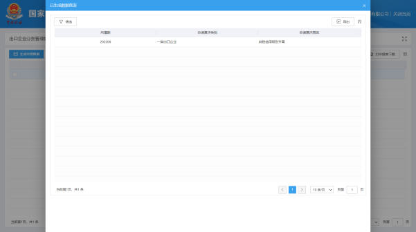 在“数据查询”中可以查看申报成功的出口企业分类管理复评申请明细数据。如图: