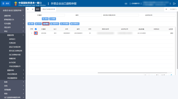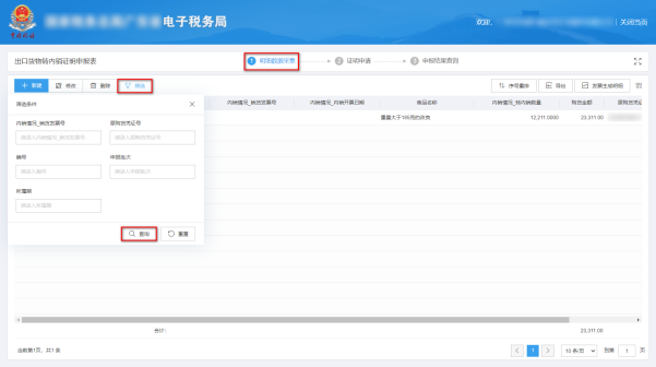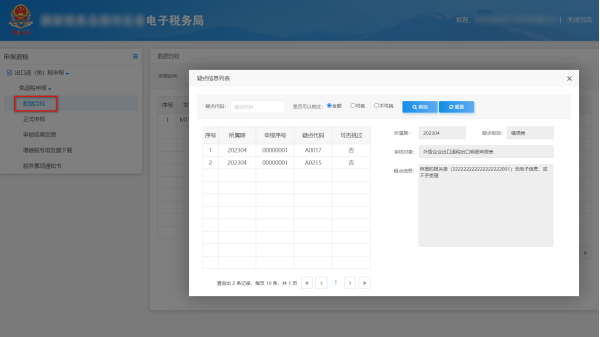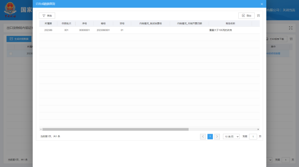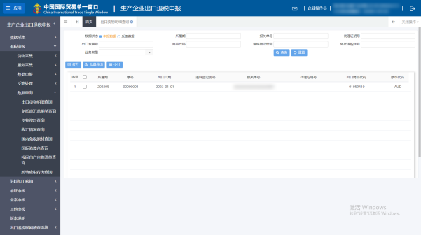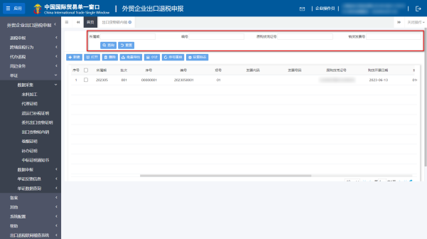 在“数据查询”中可以查看申报成功的出口货物转内销证明明细数据。如图: