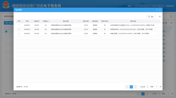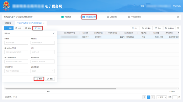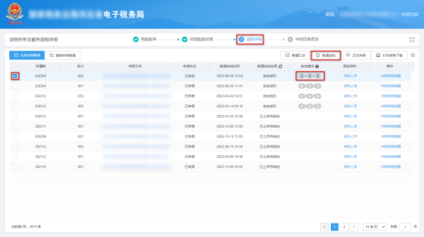 明细数据采集可采集需要申报的明细数据,同时也可以对已采集的数据进行修改、删除等操作,当采集的数据较多时,也可通过筛选功能筛选所需要的数据。如图: