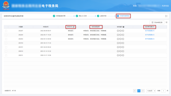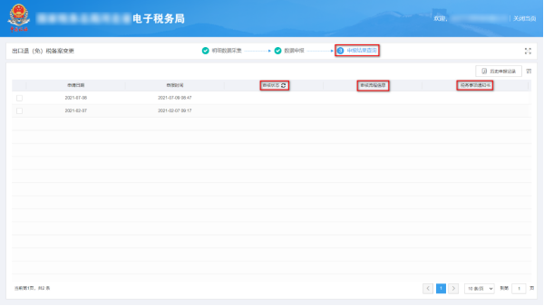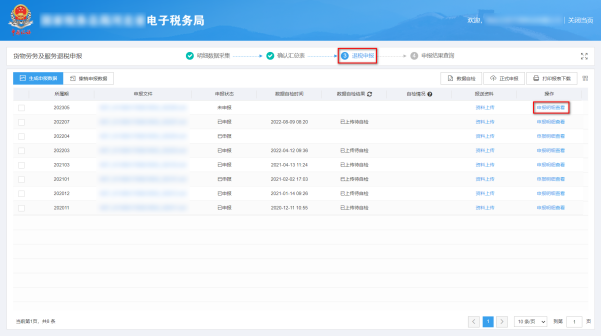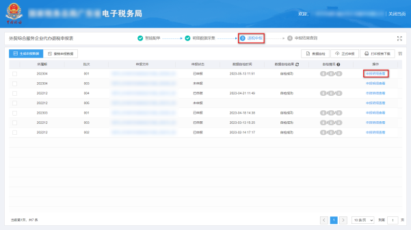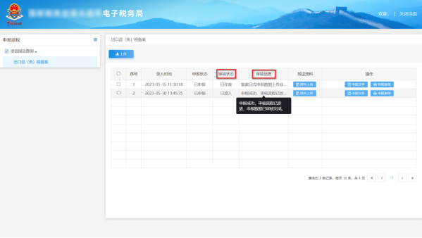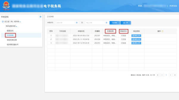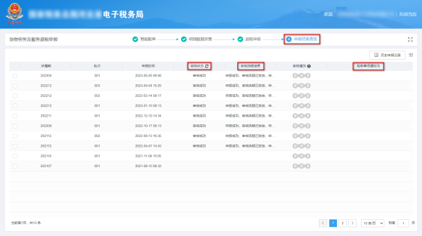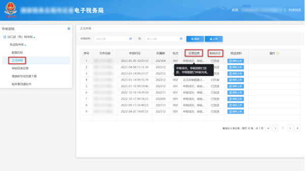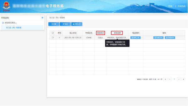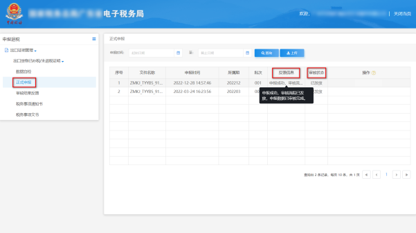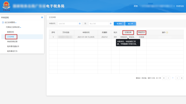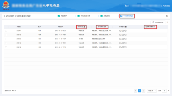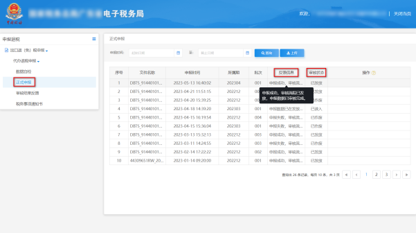 完成正式申报后,可实时查询税务机关对该笔业务的审核状态及流程信息。如图: