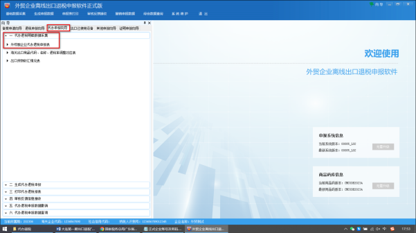 采用离线版申报系统进行一类出口企业评定申请申报的需要与电子税务局“离线申报”配合使用,首先通过离线版申报系统采集申报数据,生成申报数据,再通过电子税务局“离线申报”完成正式申报。