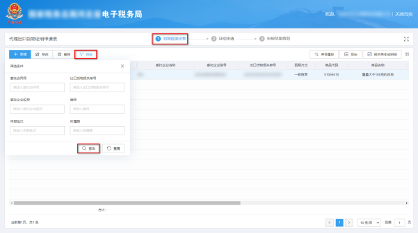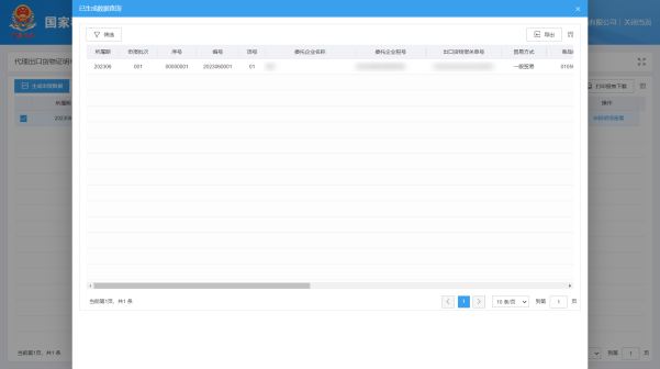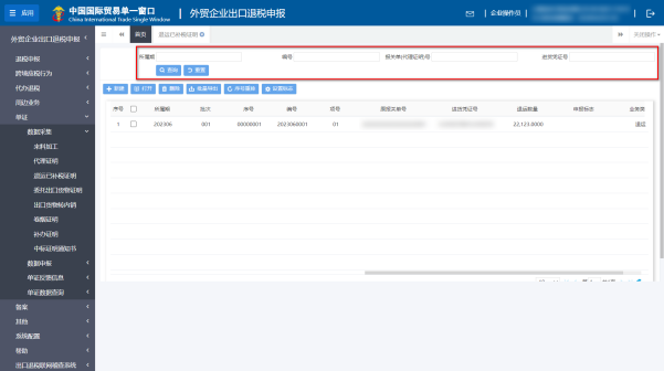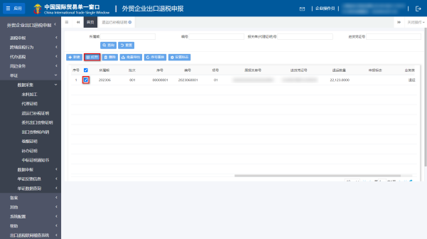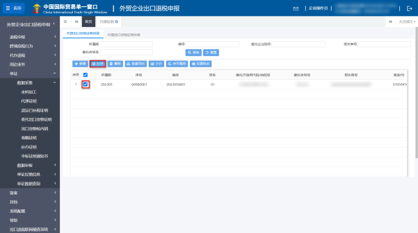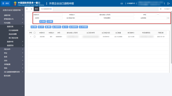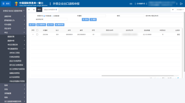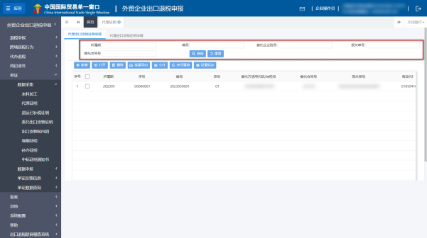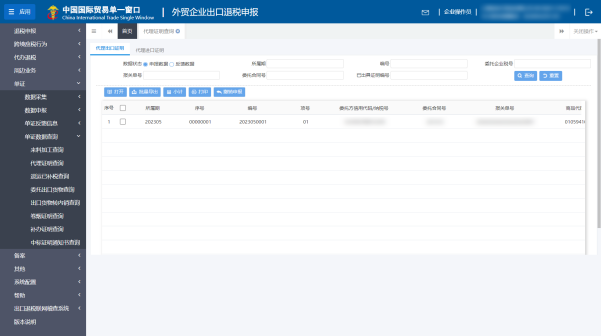 在“数据查询”中可以查看申报成功的代理出口货物证明明细数据。如图: