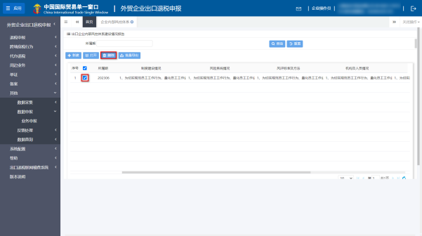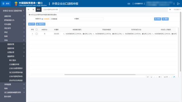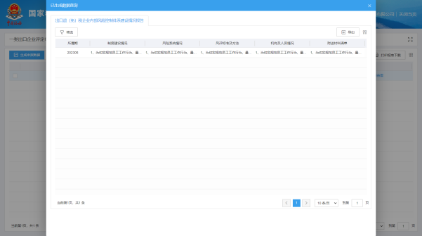 在“数据查询”中可以查看申报成功的出口企业内部风控体系建设情况报告明细数据。如图: