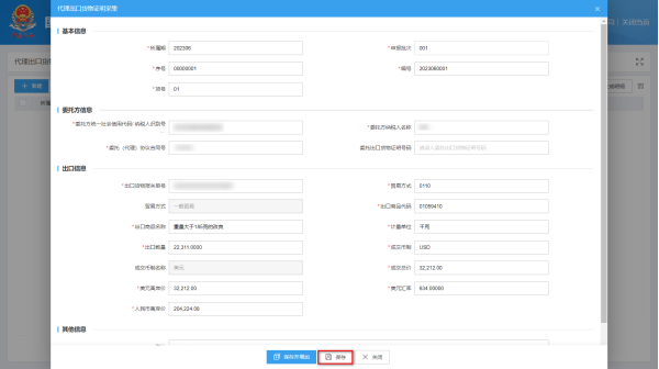 需要修改数据时,勾选需要修改的记录,点击【打开】按钮,弹出代理出口货物证明申请编辑界面,进行相应字段的修改。如图: