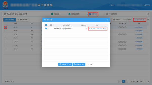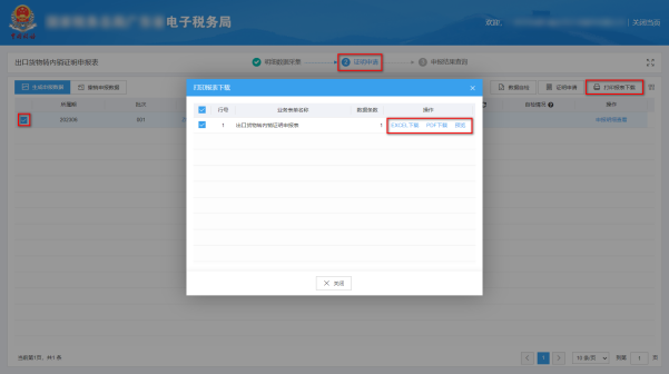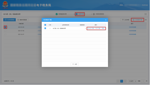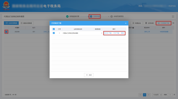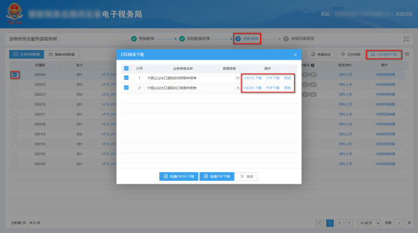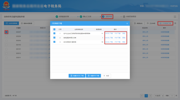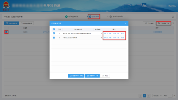 点击【申报表单】按钮,将申报明细数据报表保存至本地电脑后进行报表打印。如图: