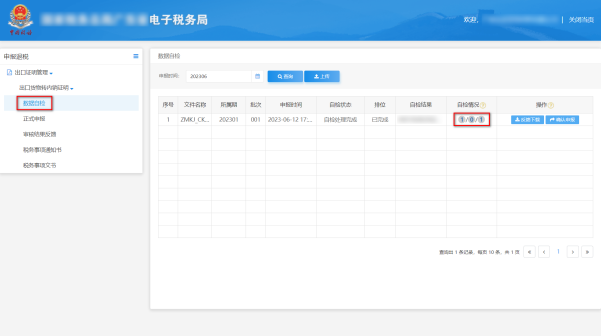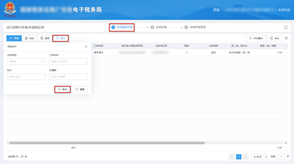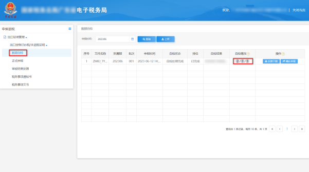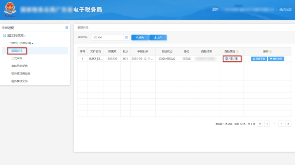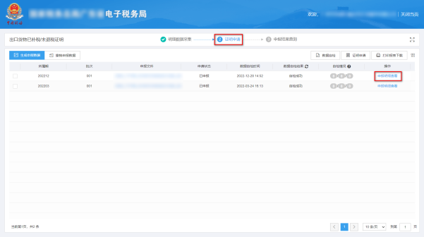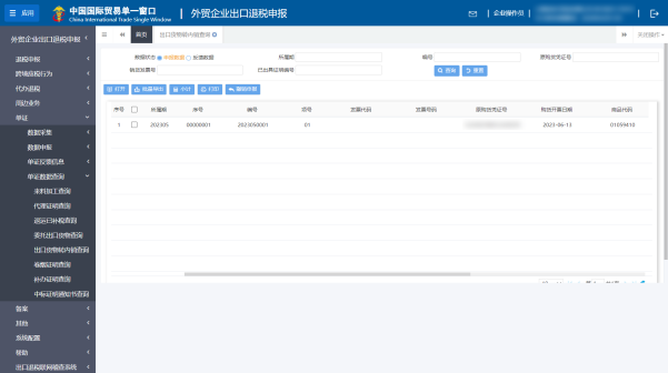 在“数据查询”中可以查看申报成功的退运已补税(未退税)证明申请明细数据。如图:
