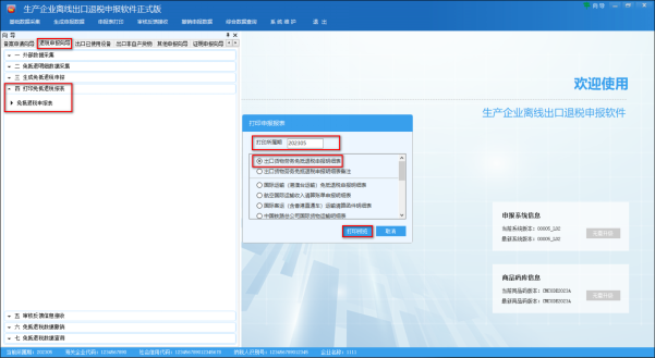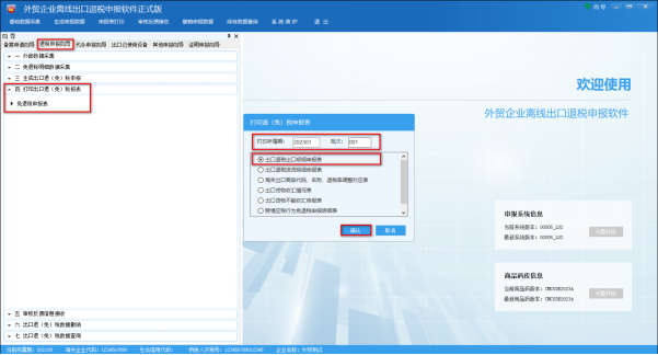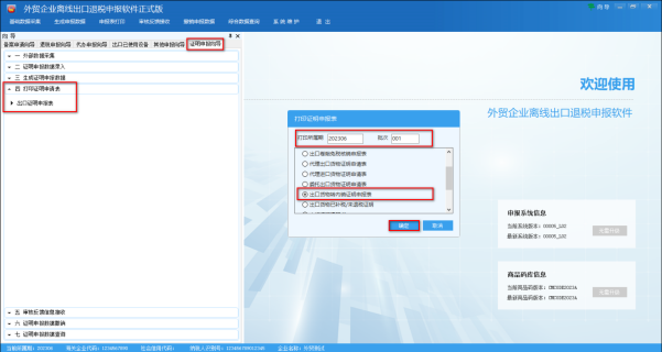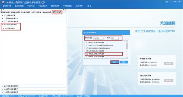 选择申报系统“证明申报向导”第四步“打印证明申请表”,选择“出口货物已补税/未退税证明”,录入“打印所属期”及“批次”,点击【确定】按钮。如图: