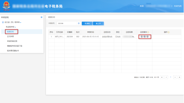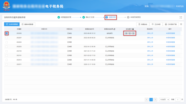 数据采集后先生成可用于申报的申报数据,再上传相关附列资料。可通过申报明细查看功能检查生成的申报数据是否有误,若检查无误即可进行正式申报,若检查有误可将申报数据撤销至明细数据采集中进行修改。同时也可以通过打印报表下载功能下载报表用于打印。