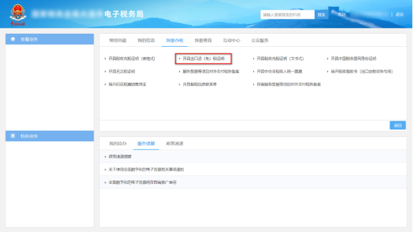 登录电子税务局后,通过“我要办税”->“证明开具”->“开具出口退(免)税证明”->“出口货物已补税/未退税证明开具”,选择“在线申报”进入申报模块。如图: