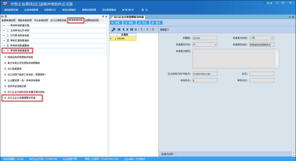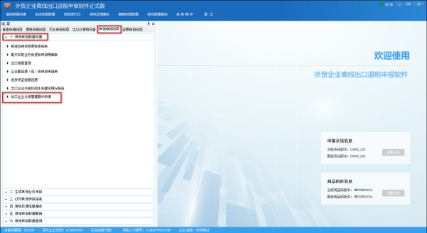 通过“向导”->“其他申报向导” ->“其他申报数据采集”->“出口企业分类管理复评申请”,进入申报模块。如图: