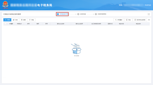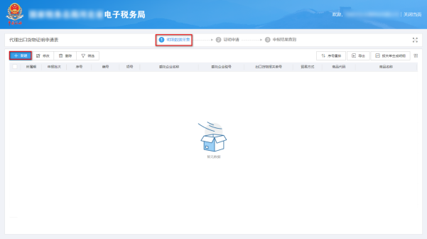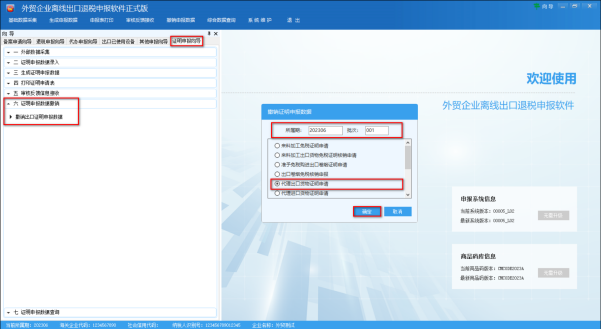 通过“向导”->“证明申报向导” ->“证明申报数据录入->代理出口货物证明申请表”,进入申报模块。如图: