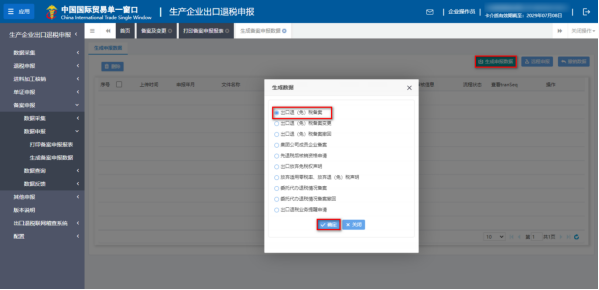 点击【生成申报数据】按钮,选择“出口企业内部风控体系建设情况报告”录入“所属期”,再点击【确定】按钮,可生成申报数据。如图: