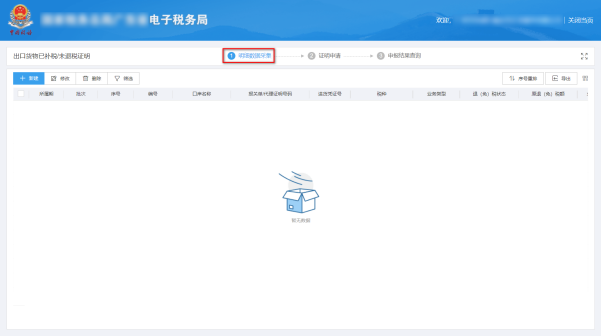 通过“向导”->“证明申报向导” ->“证明申报数据录入->出口货物已补税/未退税证明”,进入申报模块。如图: