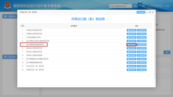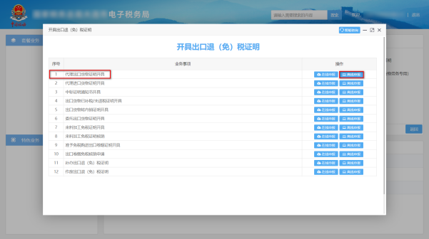 正式申报后,可实时查询税务机关对该证明业务的审核状态及流程信息,点击“税务事项通知书”可下载该笔申报对应的电子版《准予受理通知书》等税务文书,点击“证明文书开具”可下载该笔申报对应的电子版证明文书。如图: