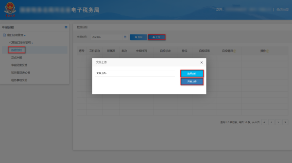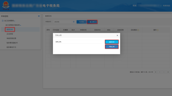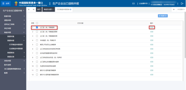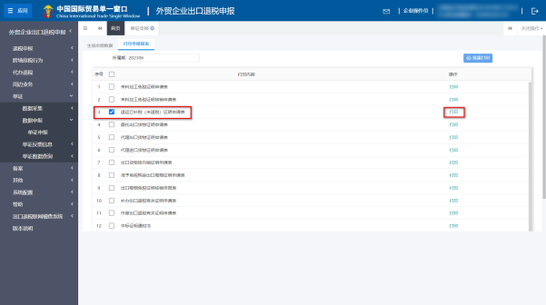 进入“数据申报”中的“单证申报”、“打印申报报表”,可以对采集完毕的数据进行数据上传,或者将生成的申报数据进行打印。