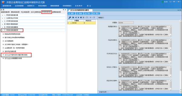 通过“向导”->“其他申报向导” ->“其他申报数据采集”->“出口企业内部风控体系建设情况报告”,进入申报模块。如图: