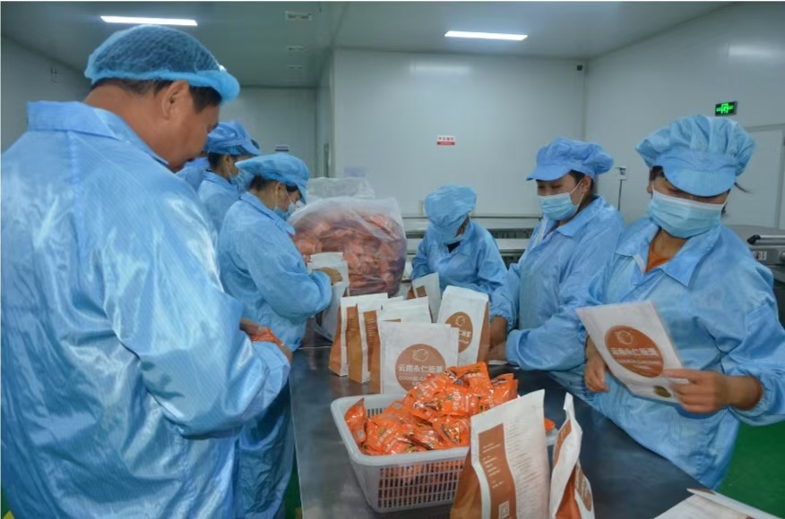 禄丰鑫鹏农产品经营有限公司通过“公司+基地+农户”运营模式,招商引资创办板栗精深加工项目,提高产品附加值实现企业增效促发展、群众畅销农产品增收致富。目前,该公司有40余人长年在厂里务工,每年8—12月季节性用工每天达200多人。公司还成立了扶贫车间,有10余名脱贫群众在车间务工就业,人均每月有2500余元收入,每年支付工人工资达400多万元。中村村民委员会傈园新村妇女兰美芬由于要照顾家中老人和小孩上学不能外出务工,她在公司任食品生产车间主任,带领15个员工负责板栗和核桃的脱皮、挑拣、包装等计件工作。“每挑拣出1公斤板栗仁4元钱,每装袋封口一袋板栗仁6分钱。每月上足26天班有200元满勤奖,每月可以领到2800-3500余元”在介绍务工情况时兰美芬脸上露出满意的笑容。